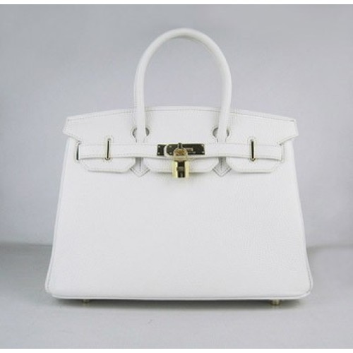 Hermes Birkin 30cm Togo en cuir Sacs à main blanc doré
