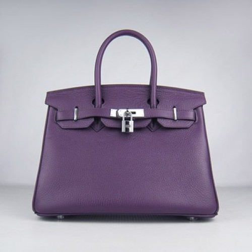 Hermes Birkin 30cm Togo en cuir Sacs à main violet argent