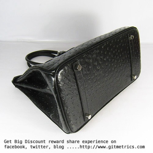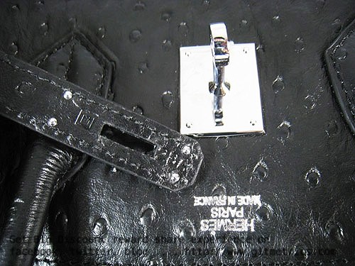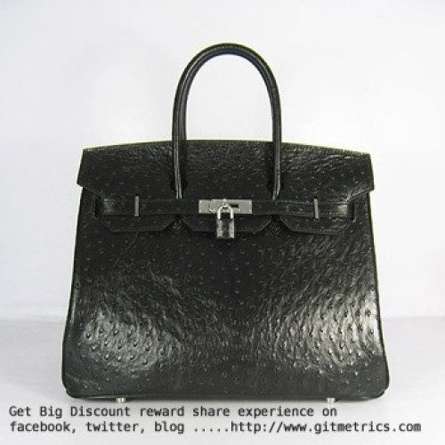 Hermes Birkin 35cm Autruche Veines Sacs à main noir argent