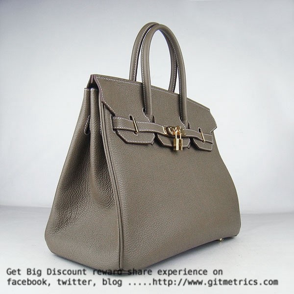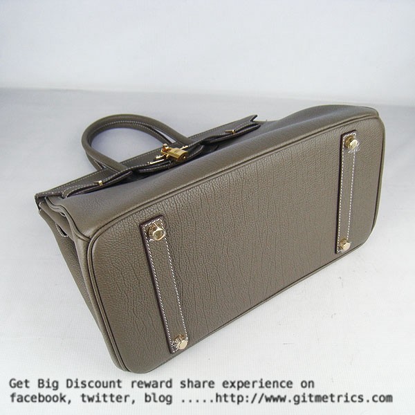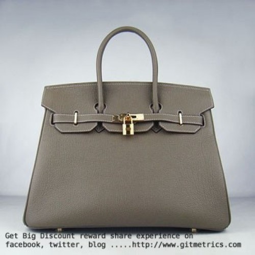 • Hermes Birkin 35cm veine peau de bovin Sacs à main kaki foncé doré