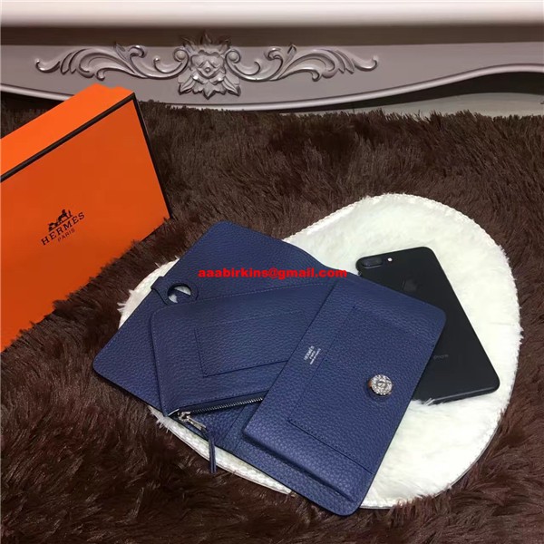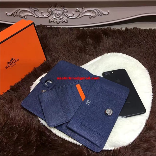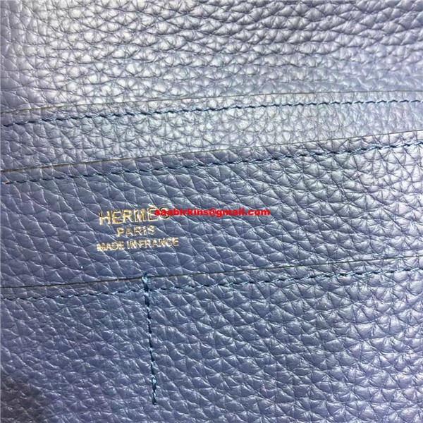 Hermes Dogon Portefeuille Togo Cuir H001 Bleu Foncé