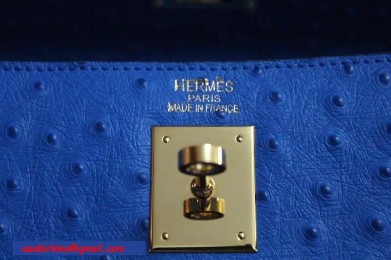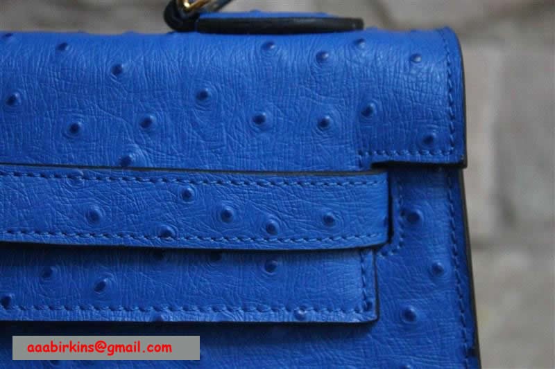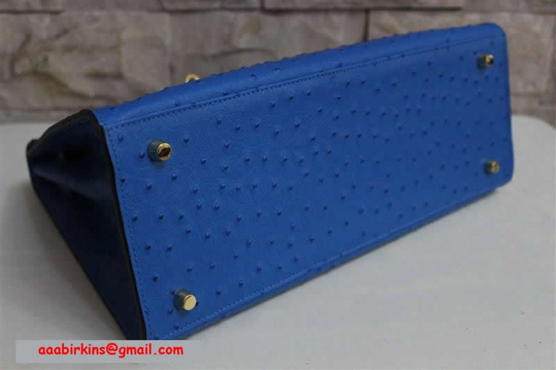 Hermes Kelly 32cm Autruche Veine Sac À Main Bleu Doré