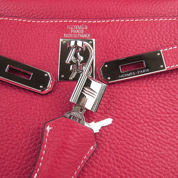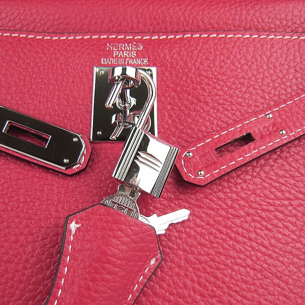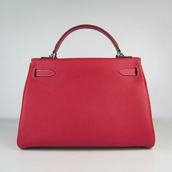Hermes Kelly 32cm Togo Sac à main en cuir rouge/argent