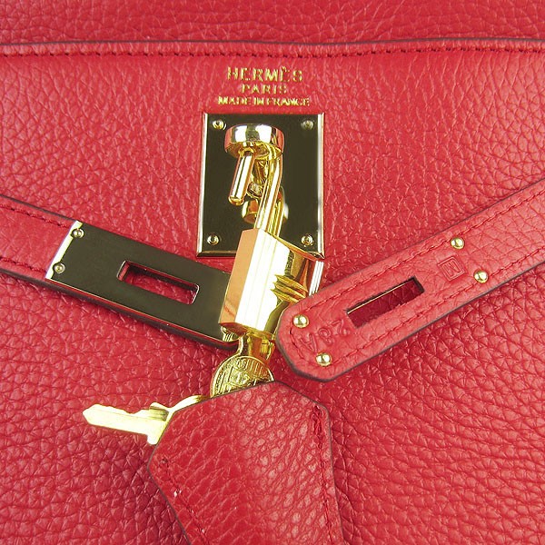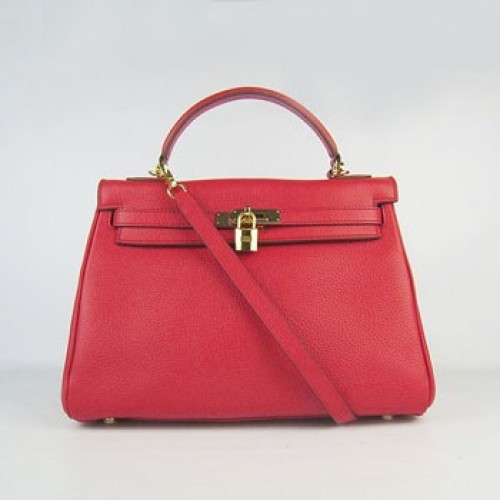 Hermes Kelly 32cm Togo Sac à main en cuir rouge/doré