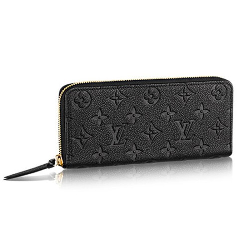 Découvrez le portefeuille Clemence, compact et pourtant très spacieux, confectionné en cuir Monogram Empreinte gaufré d'une grande qualité.