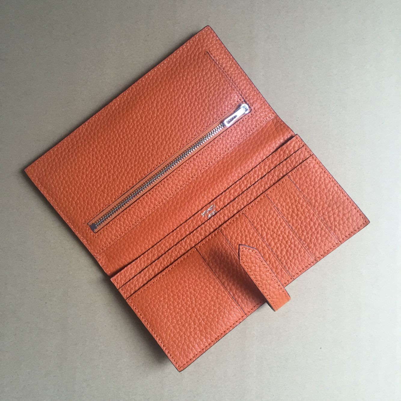 Portefeuille Hermes en cuir de veau H005 en orange