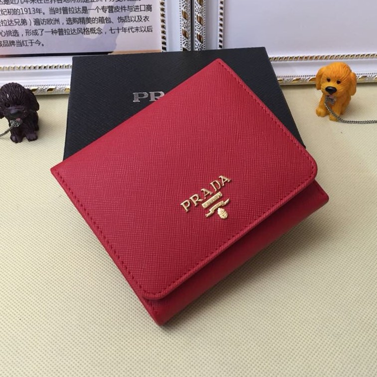 Prada 1M0176 Portefeuilles en Cuir Saffiano en Rouge
