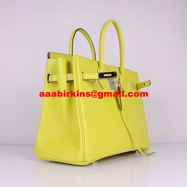 Hermes Birkin 30cm Togo Sacs à main en cuir jaune citron argent