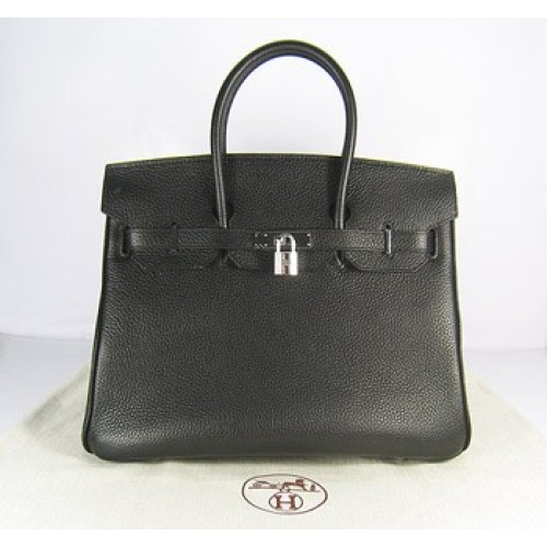 Hermes Birkin 35cm Togo en cuir Sacs à main noir argent