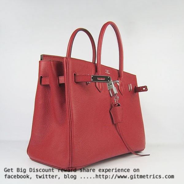 Hermes Birkin 35cm Togo en cuir Sacs à main rouge argent