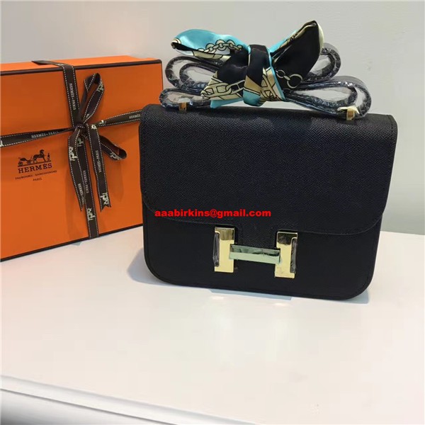 Sac Hermes Constance 23cm Cuir Epsom Noir Or