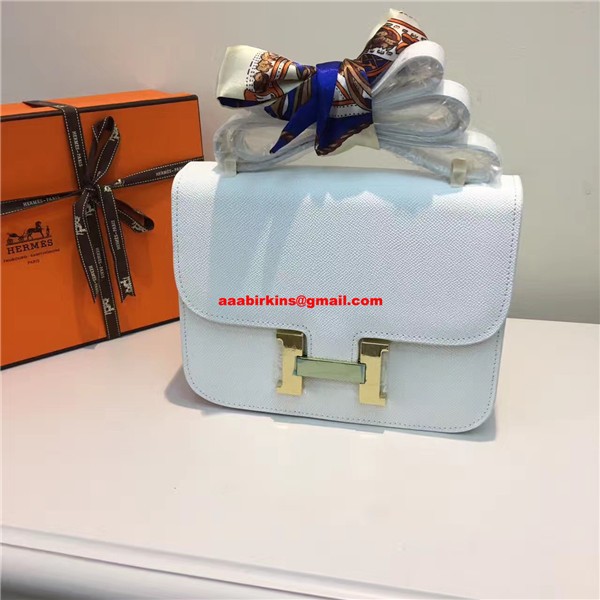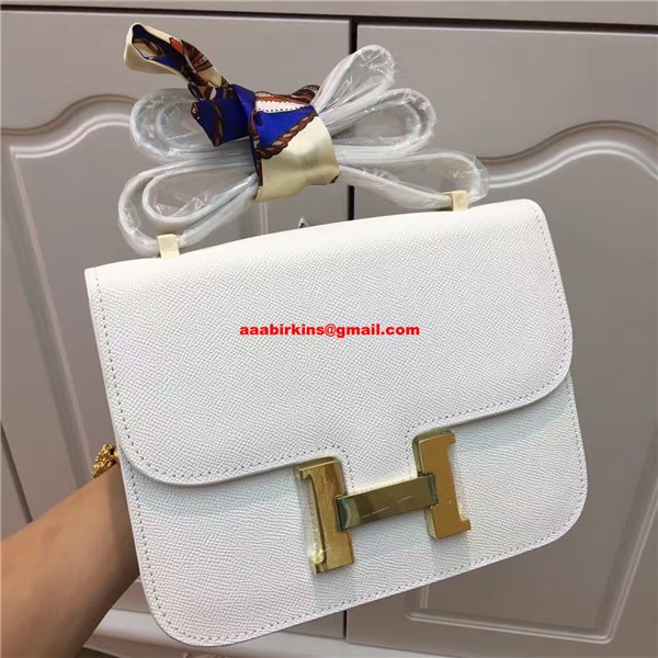 Sac Hermes Constance 23cm Cuir Epsom Or Blanc
