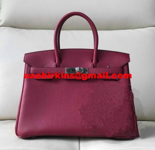 Hermes Birkin 30cm Togo en cuir Sac à main bordeaux argent