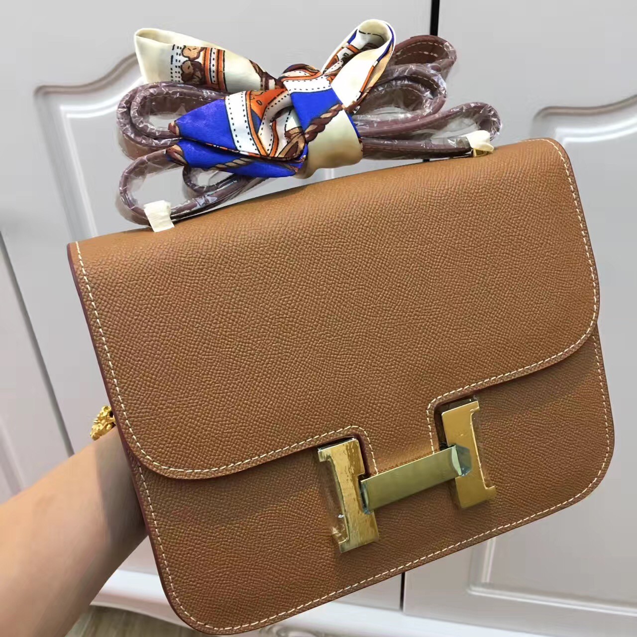Sac Hermes Constance 23cm Cuir Epsom Camel Or