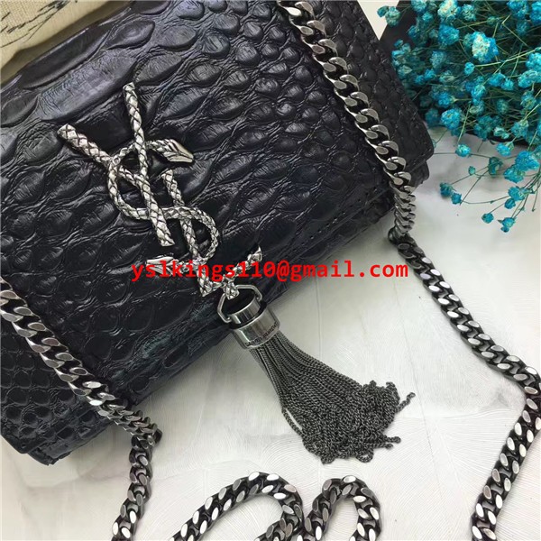 • YSL Petit Sac Chaîne Tassel 17cm Serpent Noir Argent