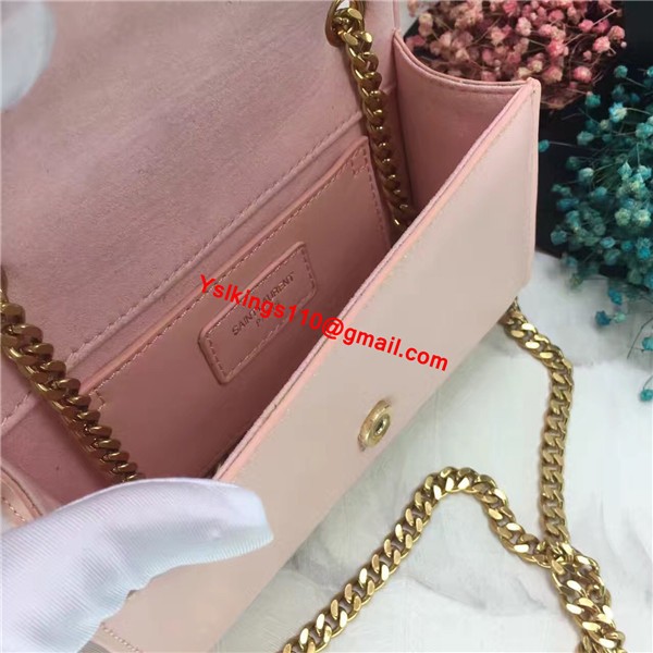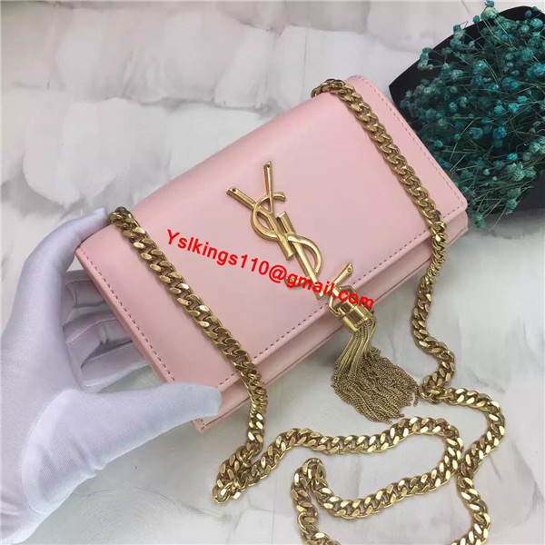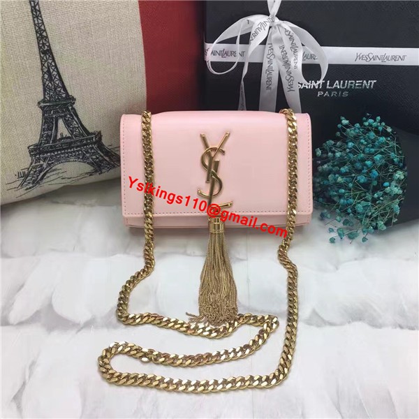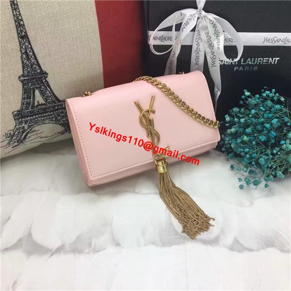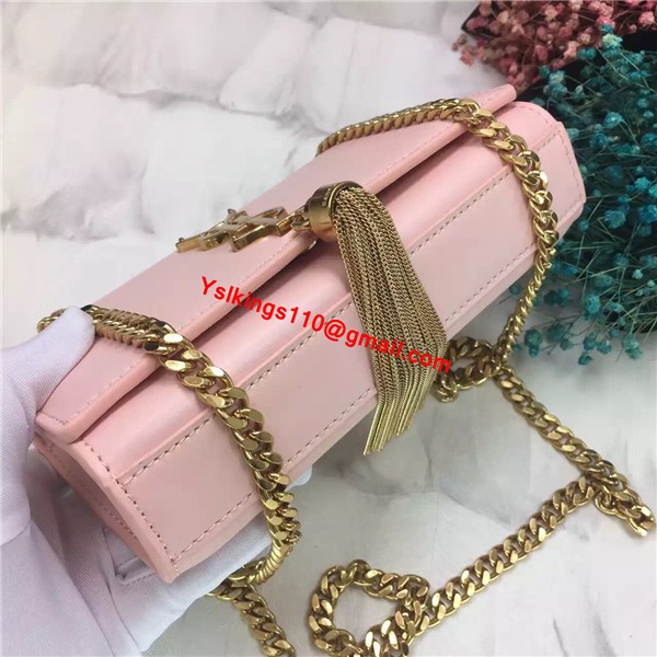 YSL Petit Sac en Cuir à Chaîne Tassel 17cm Or Rose Clair
