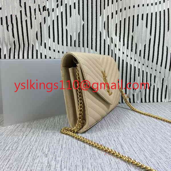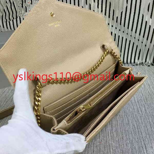 Sac Chaîne Enveloppe YSL Cuir Caviar Abricot 23cm
