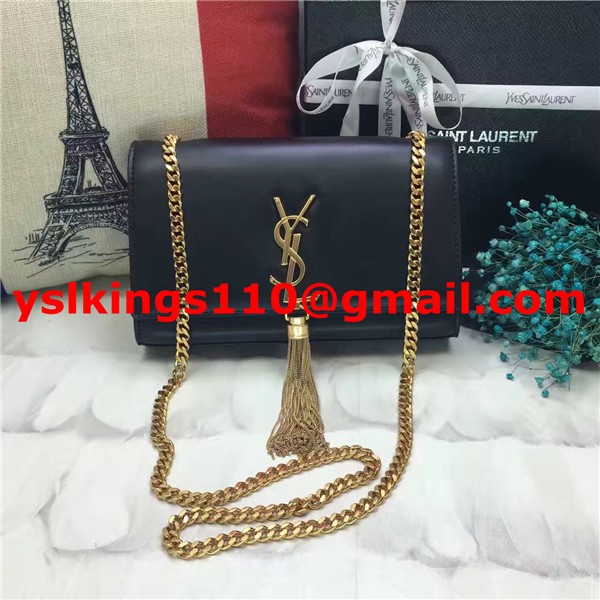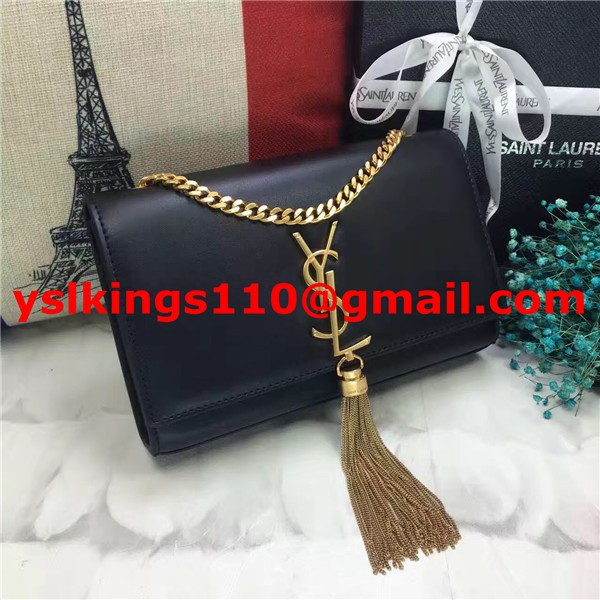 YSL Sac Chaîne Tassel 22cm Cuir Lisse Noir Or