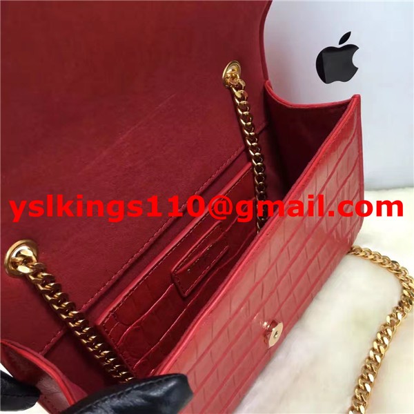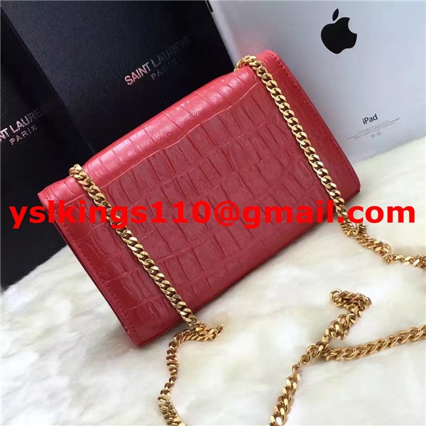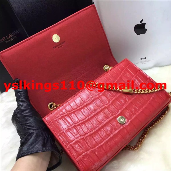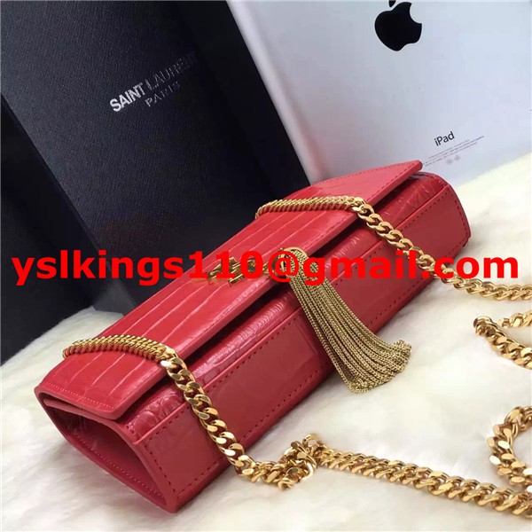• YSL Sac Chaîne Pompon 22cm Croco Rouge Or