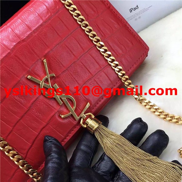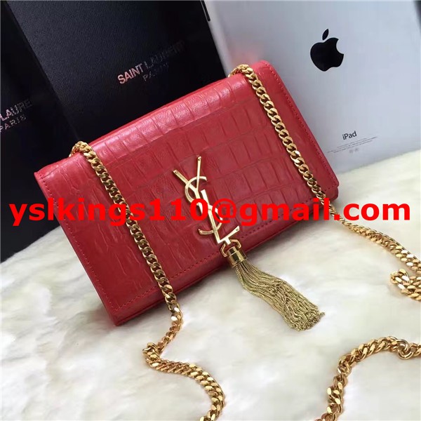 YSL Sac Chaîne Pompon 22cm Croco Rouge Or